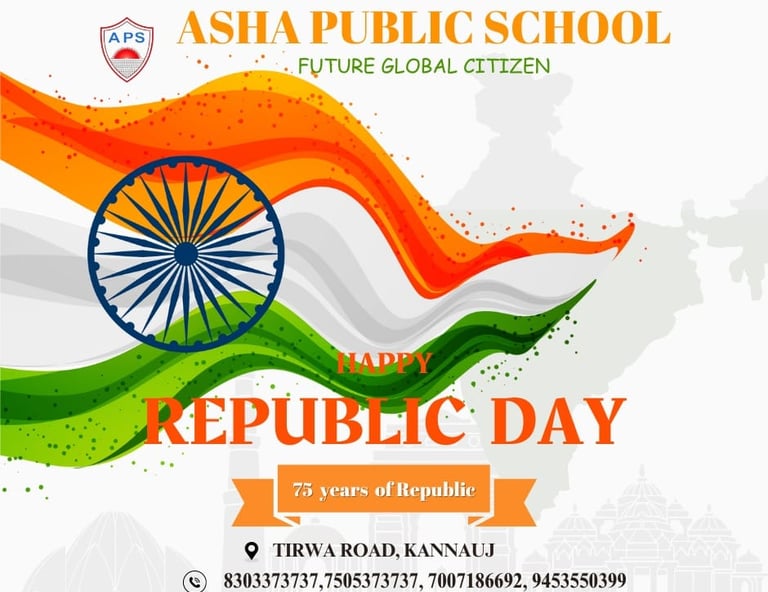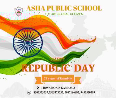 Republic Day is not just a date on the calendar; it's a reminder of the values, sacrifices, and unity that define our nation. At Asha Public School, this auspicious day is commemorated with great fervor and enthusiasm, as we come together to honor the rich tapestry of our nation's heritage and celebrate the principles enshrined in our Constitution. Join us as we reflect on the memorable Republic Day celebrations at Asha Public School this year.